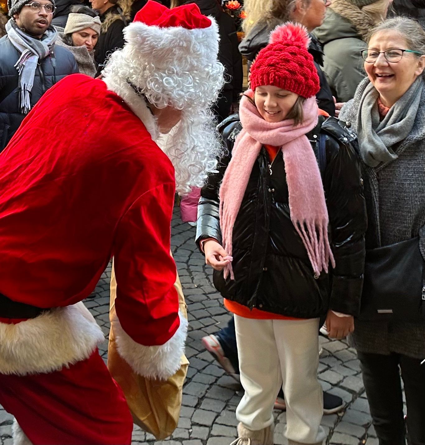 Unsere Weihnachtsmarkt-Activity 2023 auf dem geschichtsträchtigen Kölner Alter Markt war wieder einmal ein voller Erfolg! Insgesamt konnten wir in 3 Tagen rund 4.700€ nach Abzug aller Kosten für die Severinschule (sehbehinderte Schulkinder) und die Langemaß-Schule (sozial schwache Schulkinder) sammeln. Wobei vor allem das Kollegium der Severinschule maßgeblich beim Standdienst und beim Plätzchenverkauf beteiligt war. Ein ganz großes Dankeschön gilt unserem LF Dr. Joachim Groth und seiner Gattin Petra Groth, die auch dieses Jahr wieder die Standorganisation und vor allem den Olivenöl-Verkauf organisiert haben. Neu war zudem in diesem Jahr, unser Lions-Nikolaus (Prof. Dr. Dietmar Barzen), der alle lieben Kindern mit gespendeten Süssigkeiten belohnte. Dabei wurde deutlich, welche internationale Anziehungskraft der Kölner Weihnachtsmarkt hat. Es kamen Kinder aus den Niederlanden, England, USA, Kanada, Spanien, Frankreich, der Ukraine, China und Japan etc. zu unserem Lions-Nikolaus an den Stand und es wurden tausende von Fotos von den Eltern dabei gemacht.